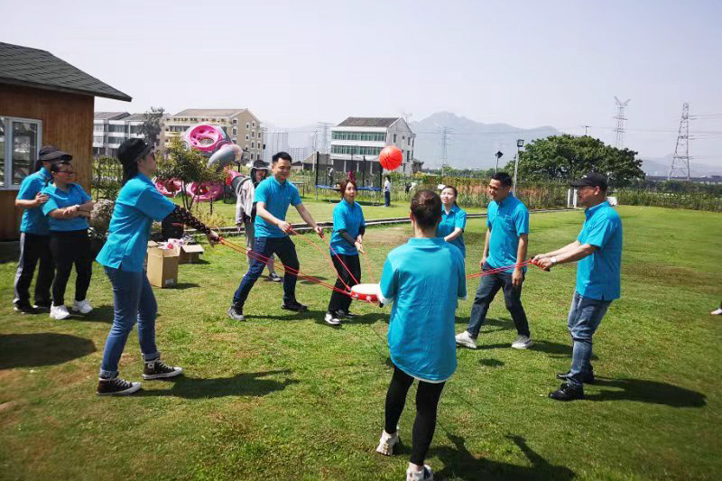 首先從“同心擊鼓”這個(gè)游戲開(kāi)始,全體員工誰(shuí)也不能松懈,手持鼓繩,齊心協(xié)力擊打鼓聲。