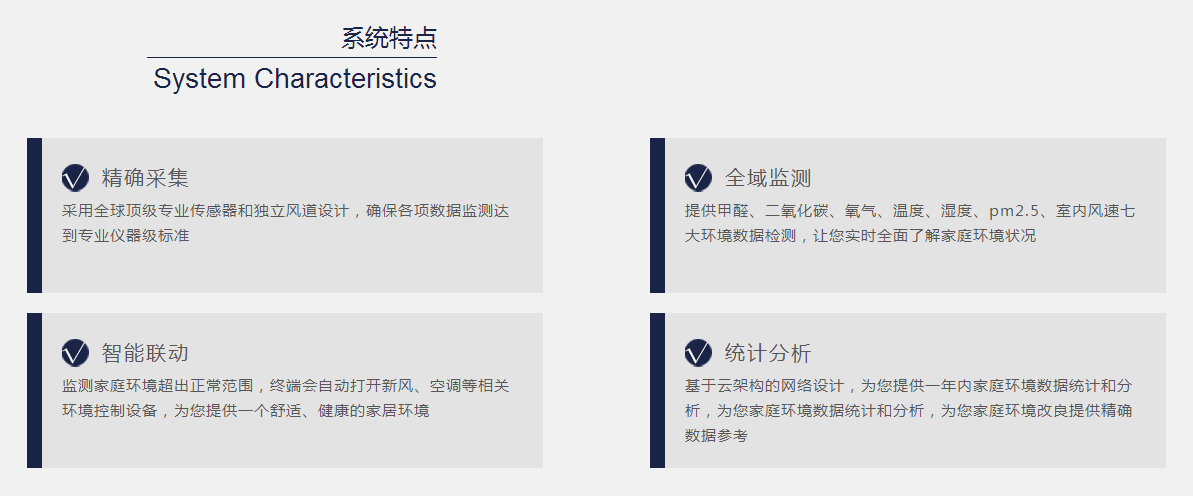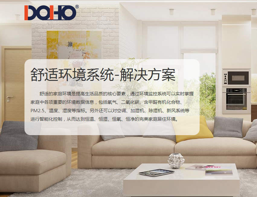 舒適的家庭環(huán)境是提高生活品質(zhì)的核心要素,通過環(huán)境監(jiān)控系統(tǒng)可以實時掌握家庭中各項重要的環(huán)境數(shù)據(jù)信息,包括氧氣、二氧化碳、含甲醛有機(jī)化合物、PM2.5、溫度、濕度等指標(biāo)。另外還可以對空調(diào)、加濕機(jī)、除濕機(jī)、新風(fēng)系統(tǒng)等進(jìn)行智能化控制,從而達(dá)到恒溫、恒濕、恒氧、恒凈的完美家庭居住環(huán)境。